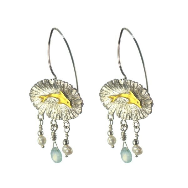 Ασημένια 925 σκουλαρίκια με επιχρυσωμένα δελφίνια, ζιργκόν και μαργαριτάρια, από τη συλλογή ΑΝΟΙΞΗ της Cyttaro Alternative Jewellery. Ανακαλύψτε την καινούρια συλλογή στην ιστοσελίδα μας και κάντε το ομορφότερο δώρο στον εαυτό σας.